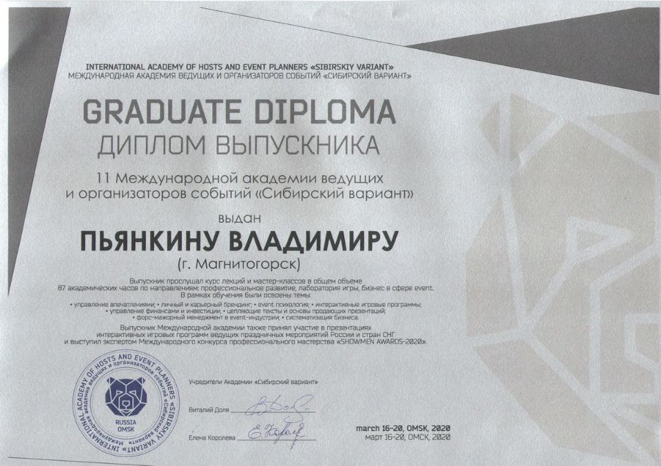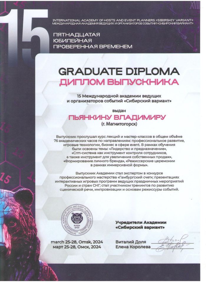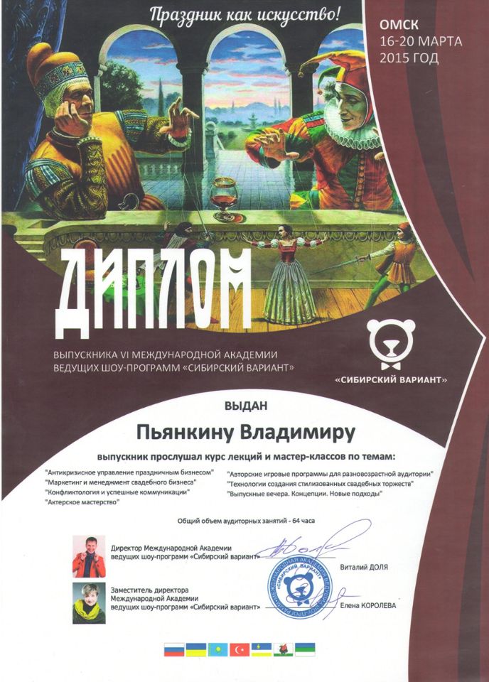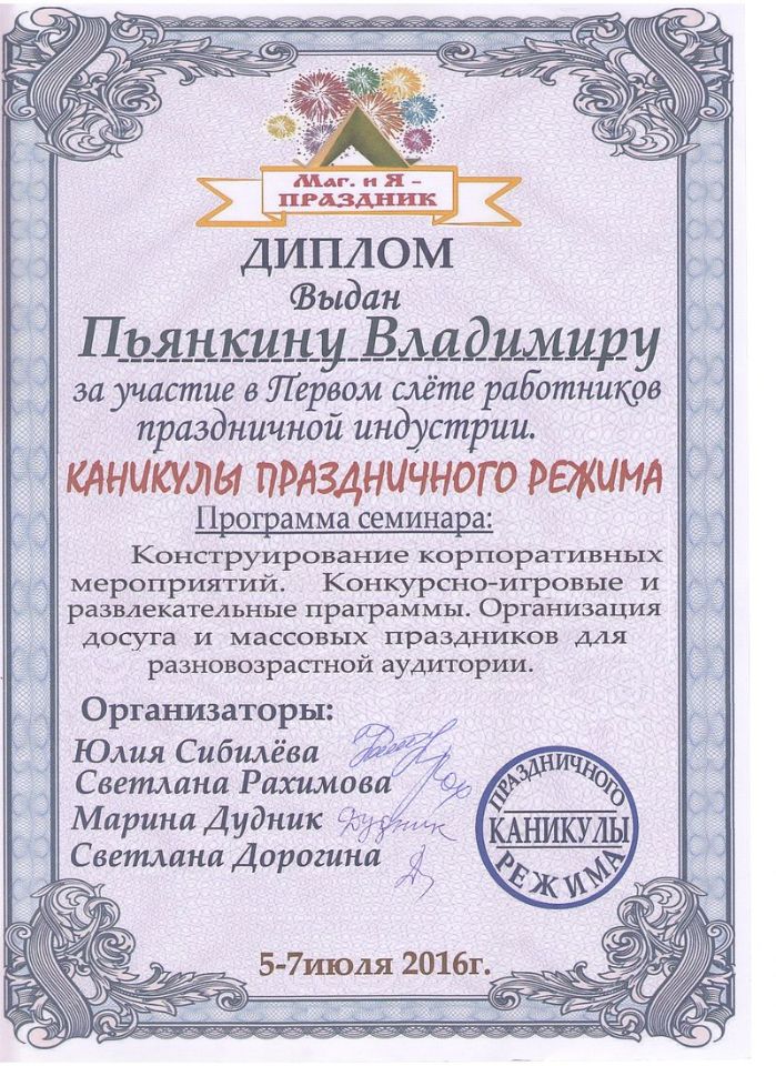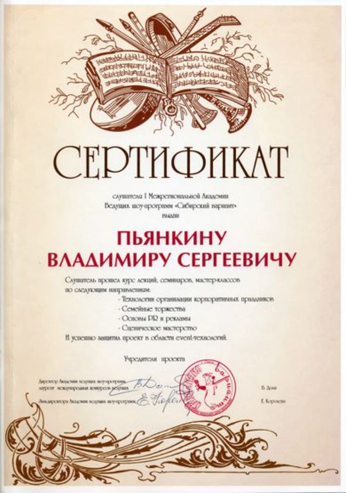 Ведущий свадеб и мероприятий Владимир Пьянкин. Аниматоры, корпоративы, детские праздники. Сайт является ознакомительным и не является публичной офертой.
