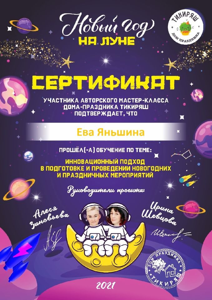 Сертификаты и дипломы по обучению и достижениям в создании праздников